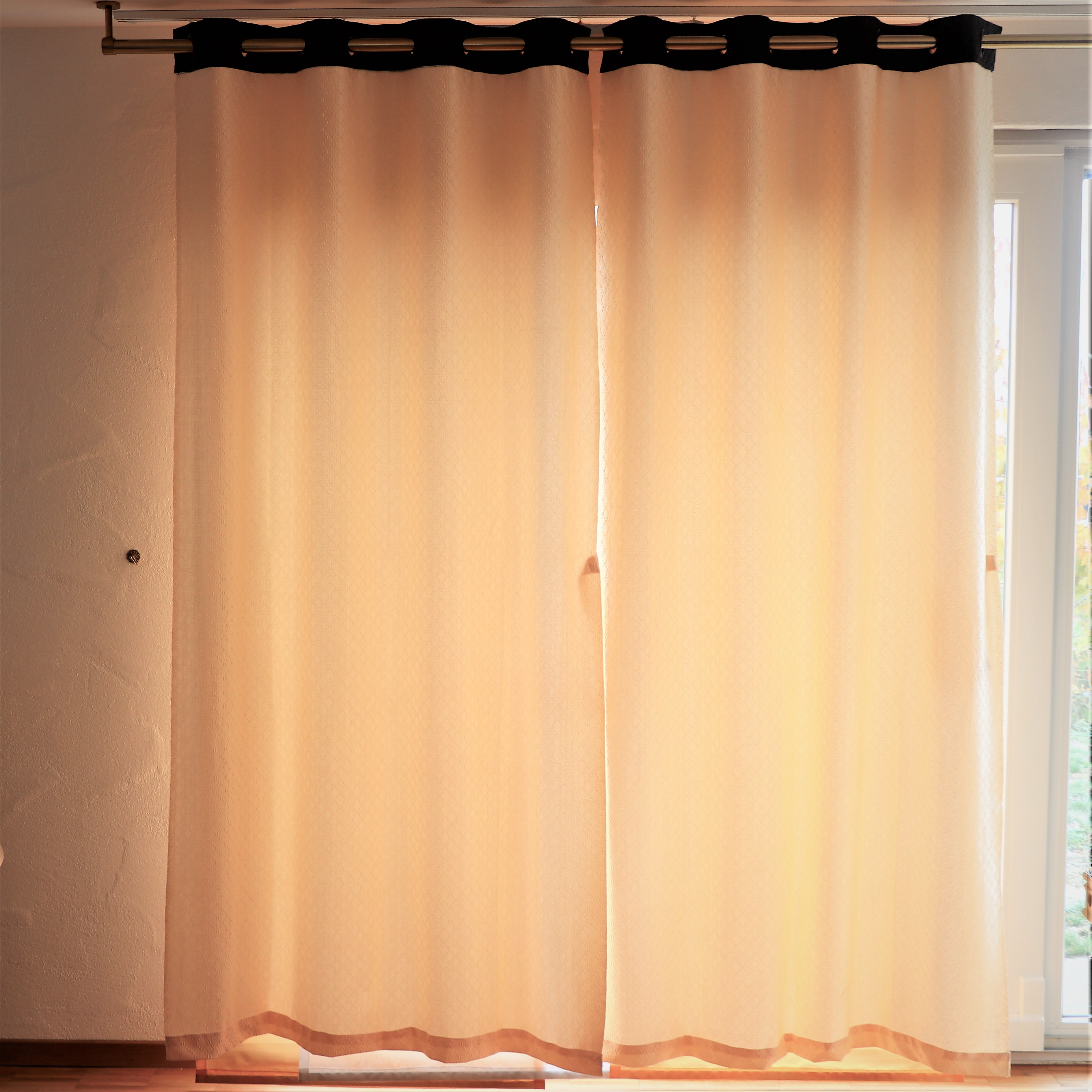 Each curtain panel has 8 vintage eyelet rings or grommets; Inside diameter of each grommet is 4cm and 5.8cm for outside diameter.