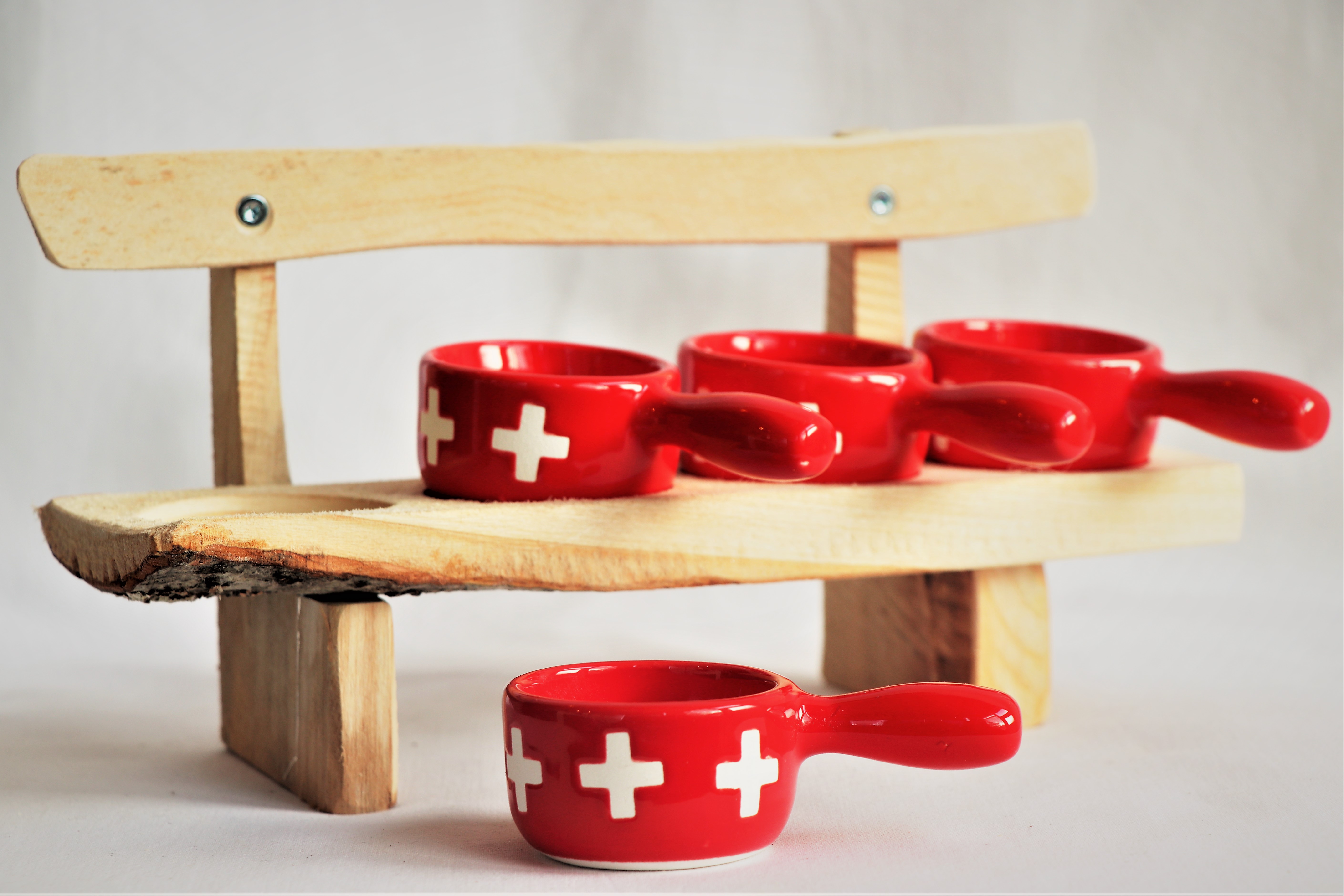 Support en bois avec 4 petits pots à fondue inclus