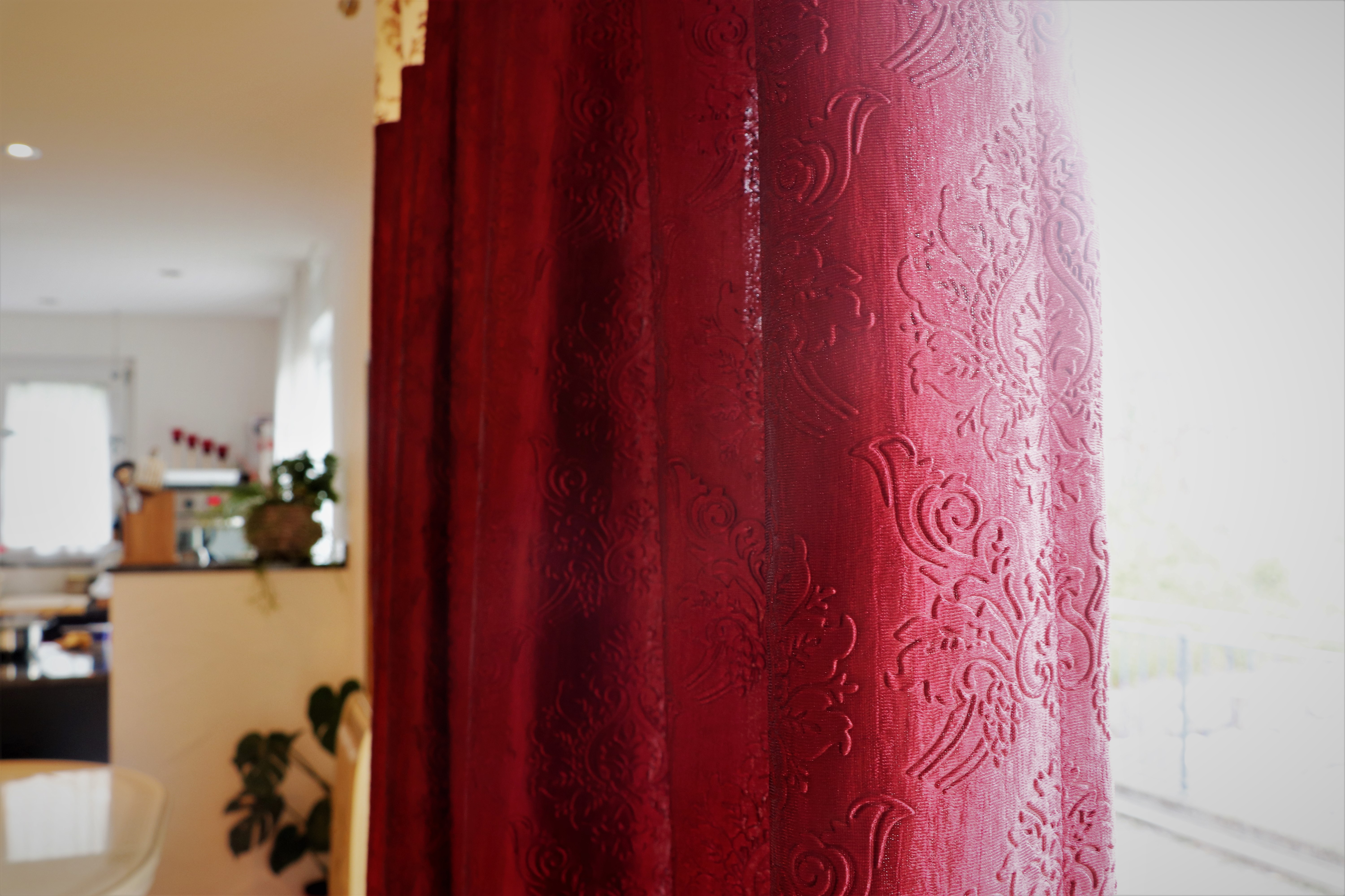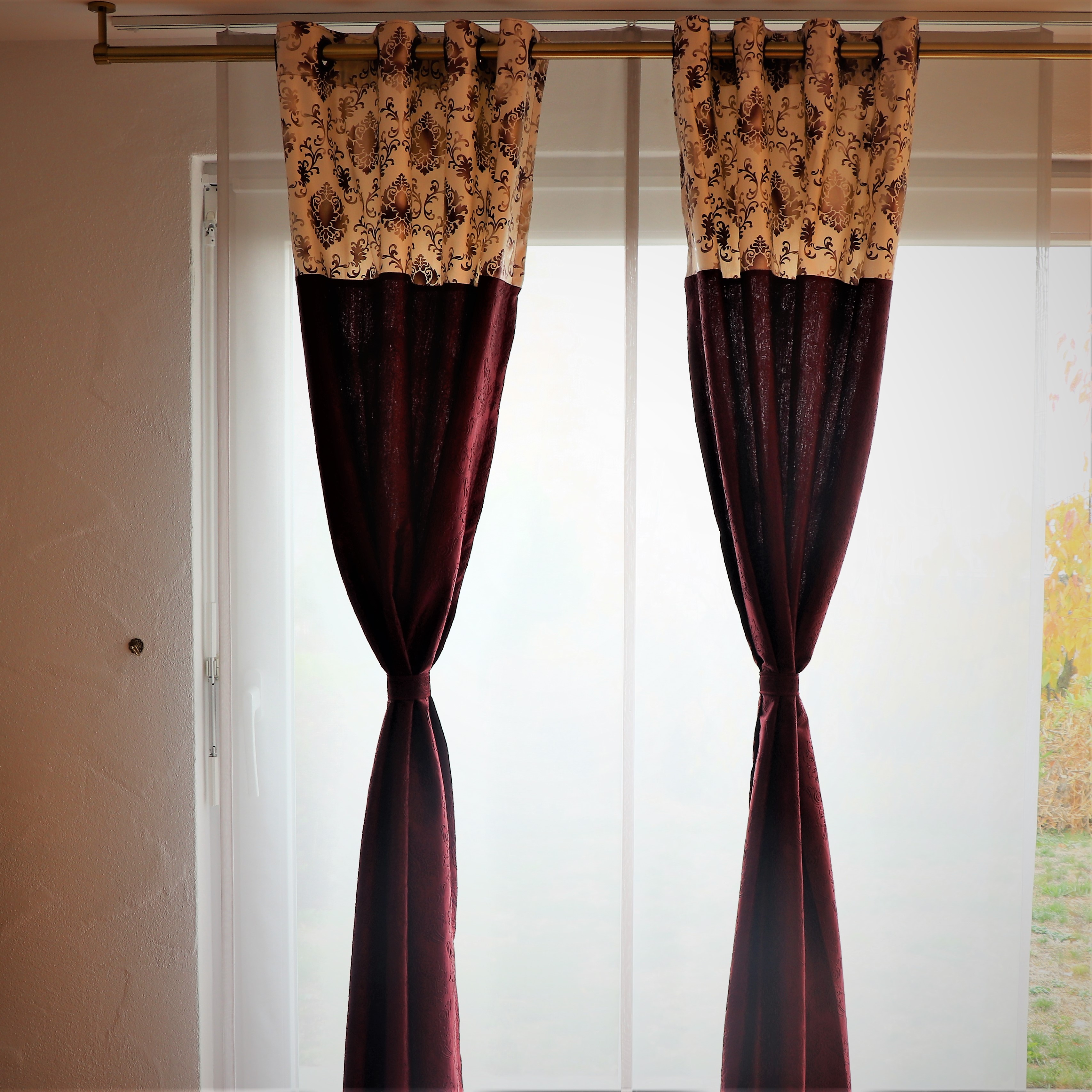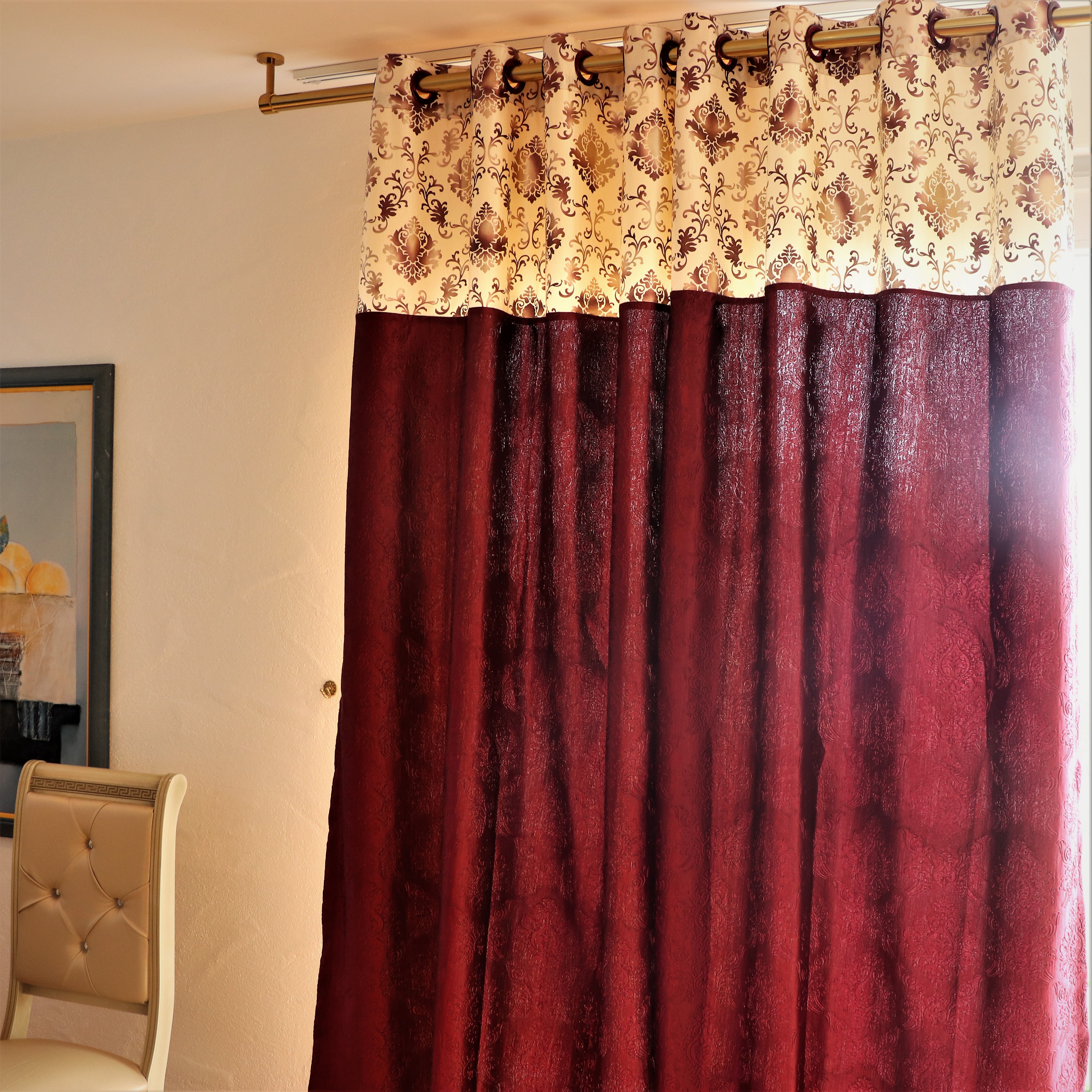 Jede Vorhang Platte hat 8 Vintage-Ösen Ringe oder Ösen; Der Innendurchmesser jeder Tülle beträgt 4 cm und der Aussendurchmesser 5,8 cm.