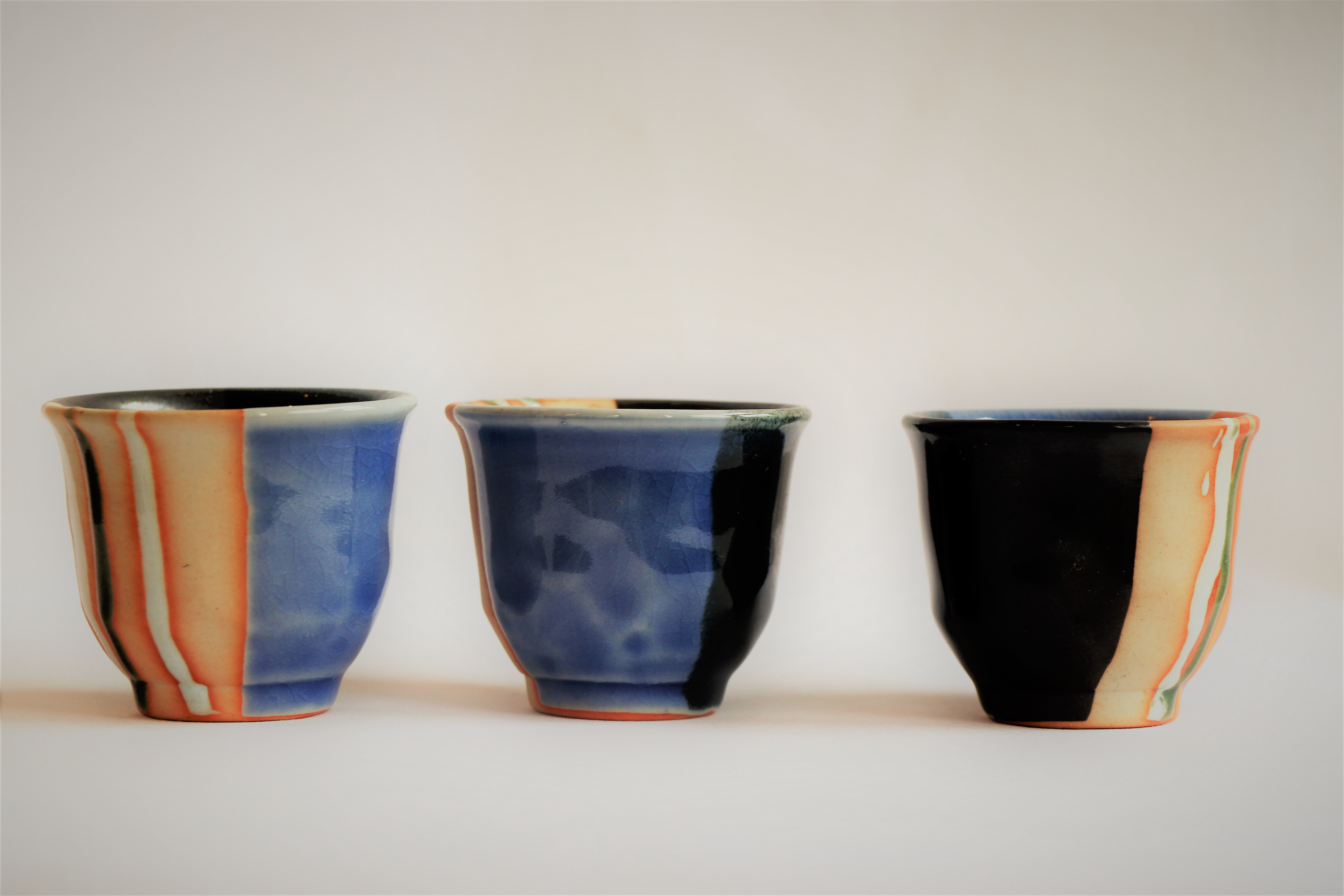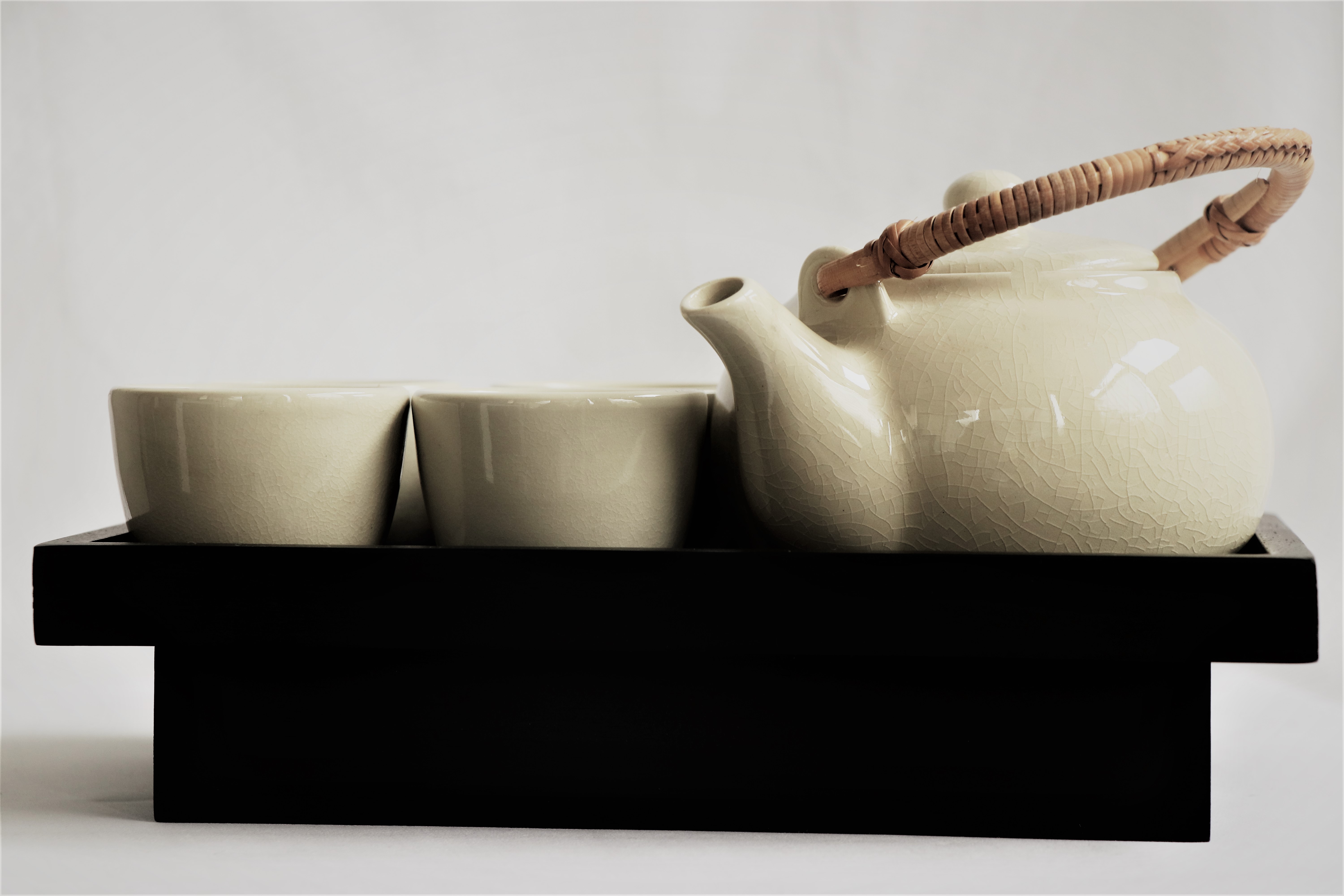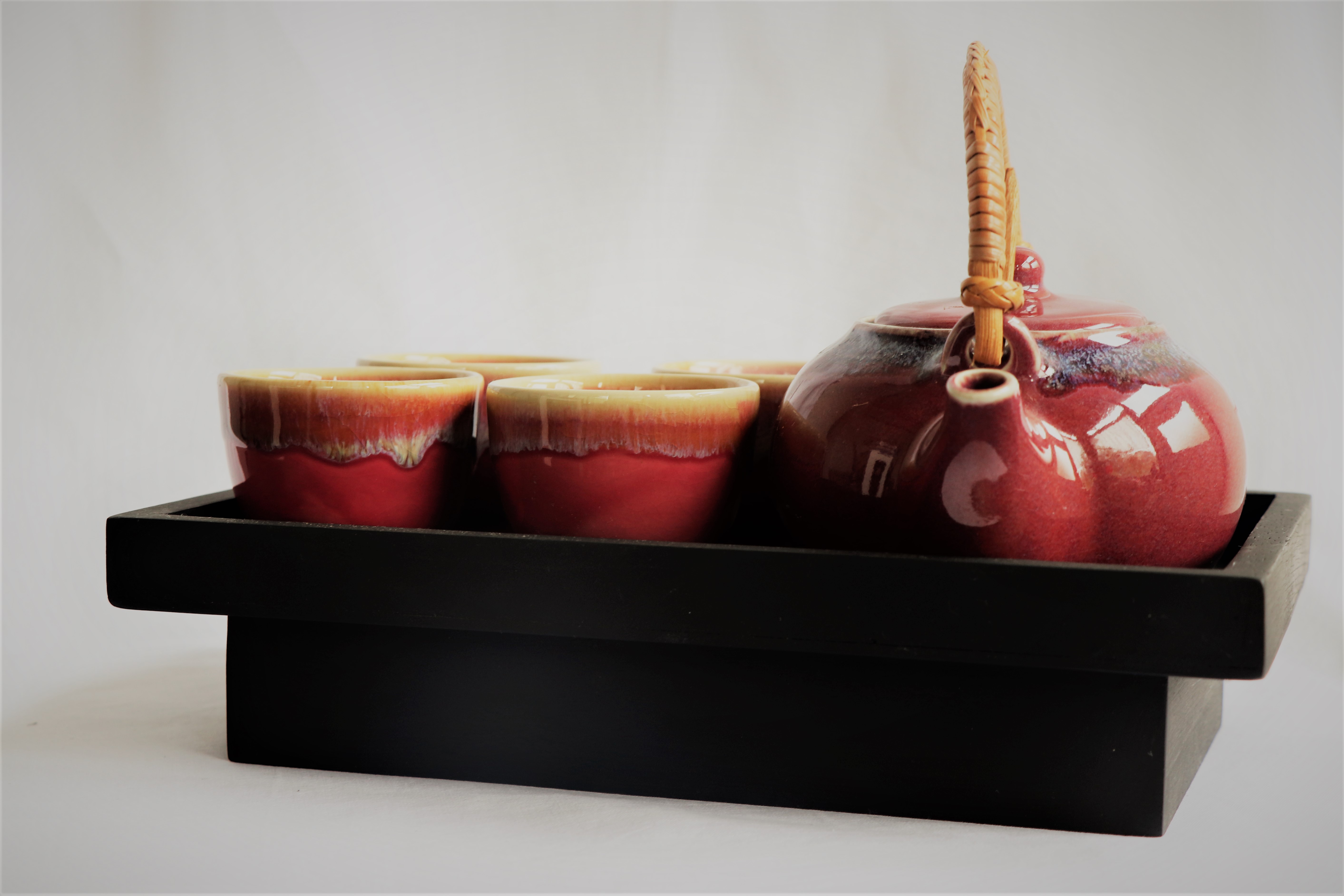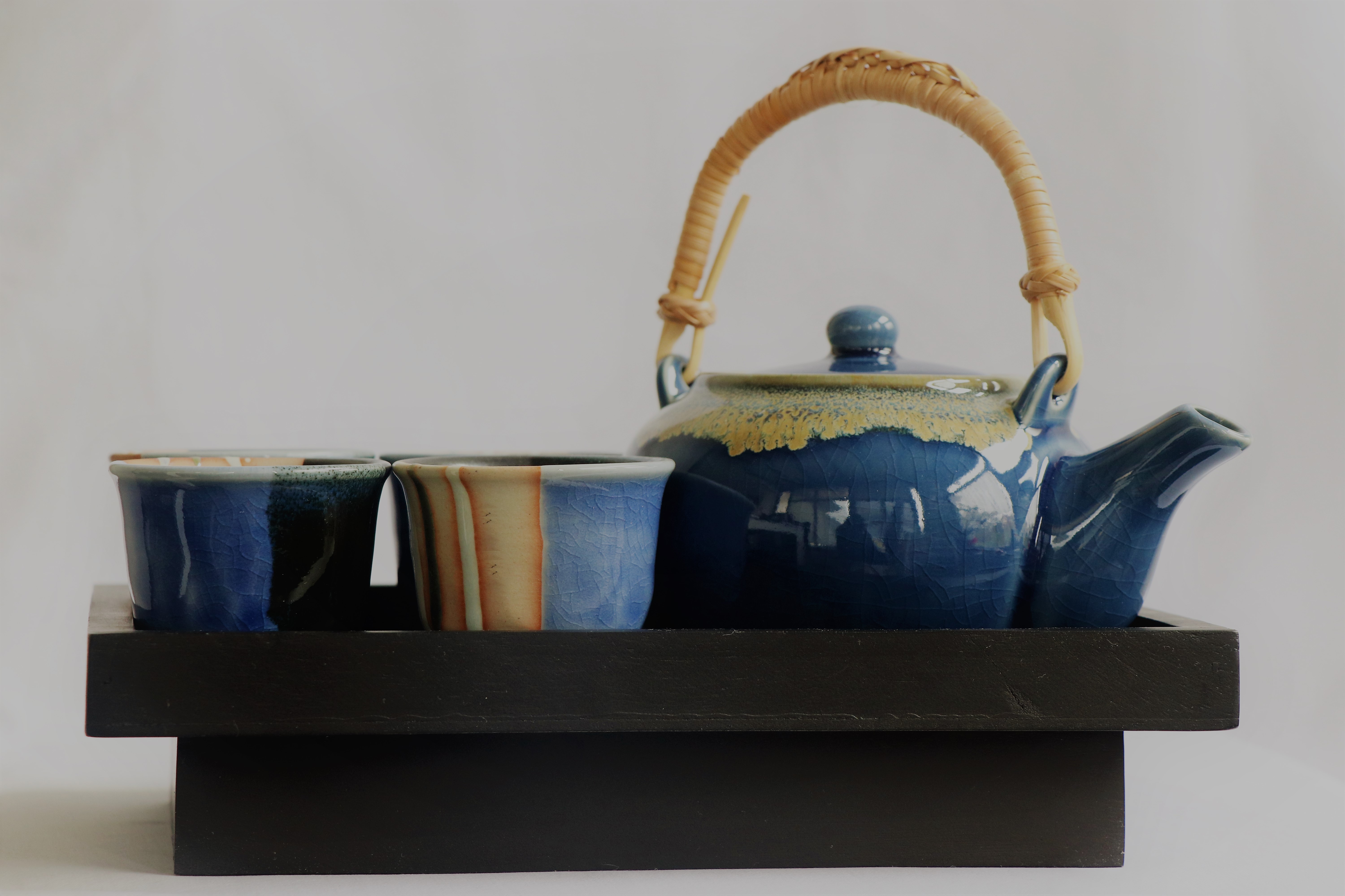 Keramik Kessel set – 1 Kessel – 4 Tassen – 1 Holztablett